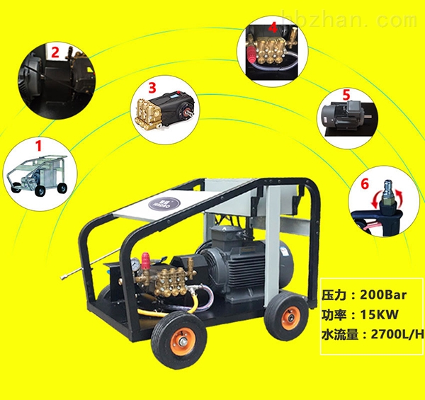 高压清洗机是一种广泛应用于管道的清洗设备。在城市下水管道清淤应用中设备主要是由高压清洗机,配有大型水罐、机动卷管器和管道清洗喷头等组成。其工作原理是利用高压泵将动力源的机械能转换为压力能,具有高强度压力的水通过高压喷嘴的小孔,再将压力能转换为动能,从而形成高速的微细水射流,利用高压水射流的强大冲击力冲击被清洗物体,把污垢剥离、清除,从而达到清洗的目的。