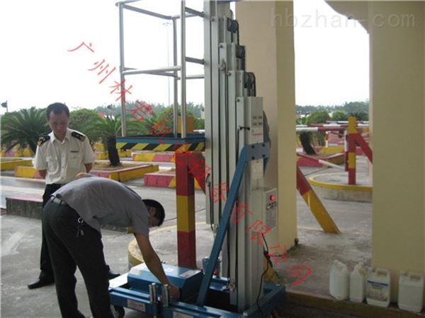 广州单柱式6米铝合金升降机现场展示图: