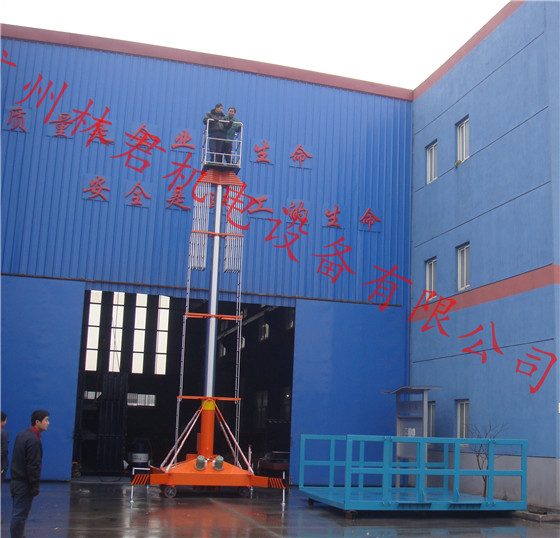 双桅铝合金升降机:全新设计的新一代产品,整体采用高强度铝型材精制而成由于型材强度高,使升降台的偏转与摆动极小。采用双桅柱式结构,载重量大,平台面积大,稳定性极好,运转灵活,推行方便。它轻盈的外观,能在极小的空间内举升能力。该升降机广泛用于厂房、宾馆、大厦、商场、车站、机场、体育场等。可用作电力线路、照明电器、高架管道等安装维护,高空清洁等单人工作的高空作业。