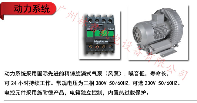 动力系统采用旋涡式气泵(风泵),噪音低,寿命长,可24小时持续工作。