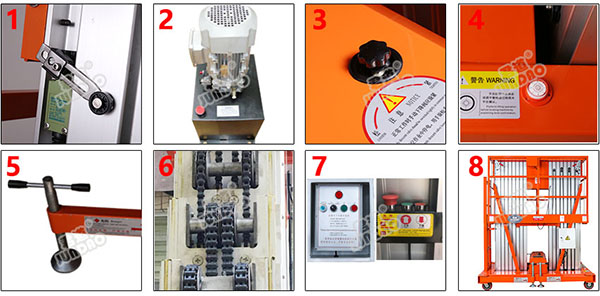 君道电动铝合金升降机厂家功能特色:
