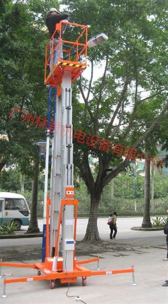 GTWY12-200双柱式升降机,可双人工作的铝合金升降机,工作高度可达13.7米,配有地面、平台两套操作按钮机围栏自动升降系统,方便使用操作。电动液压升降,升降柱采用双链条式高强度铝合金型材,安全可靠,升降平稳,无噪音,液压单元经久耐用,设备移动方便灵活。