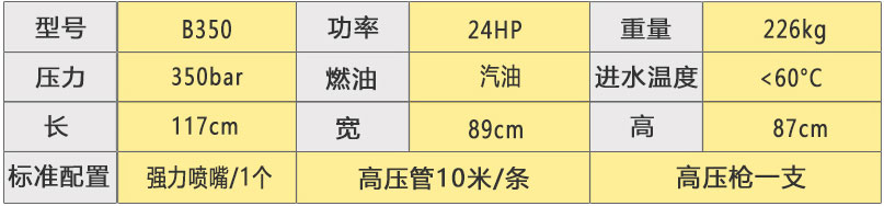 化工树脂清洗350公斤冷水高压清洗机B350技术参数: