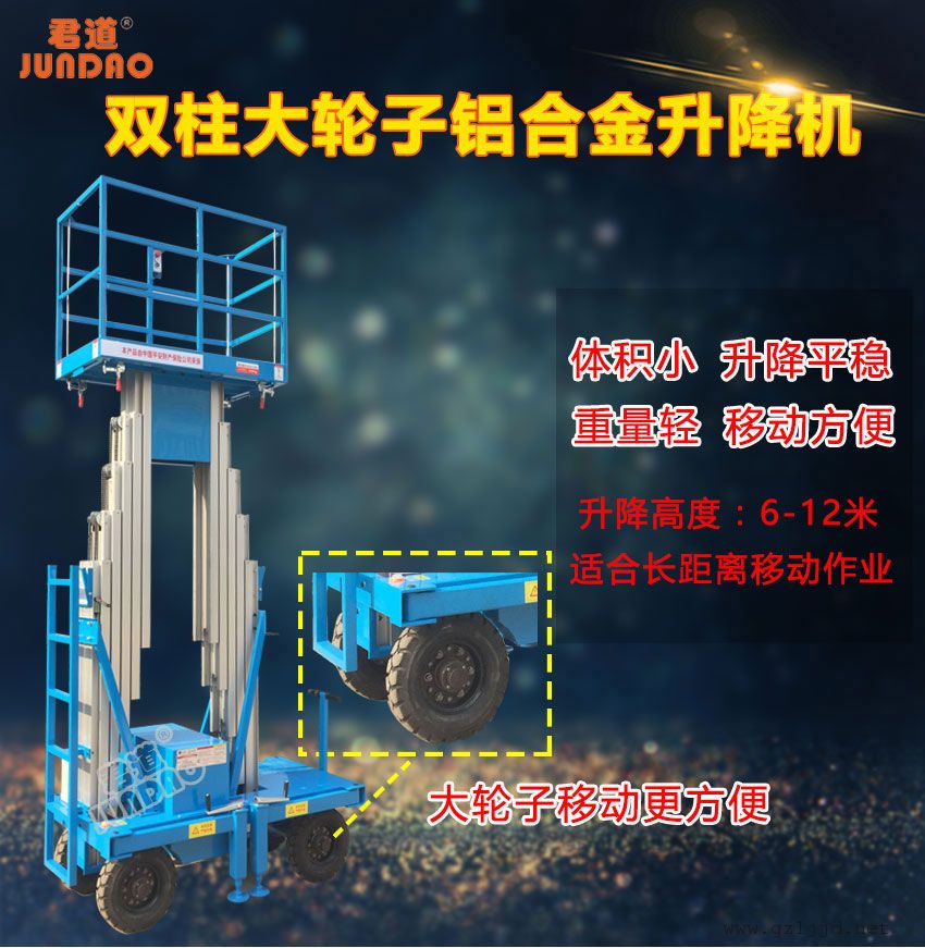 君道双人作业双柱式升降机平台高度可达12米技术参数GTWY12-200: