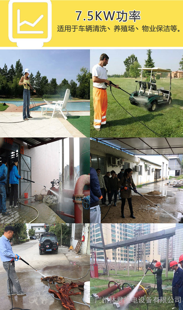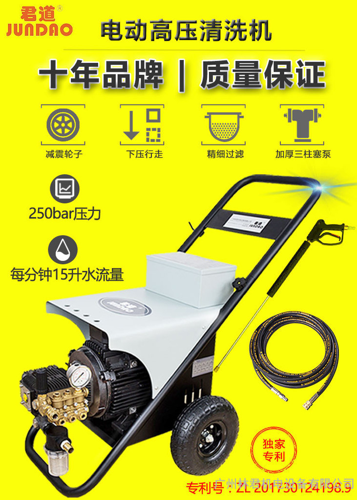 冷水高压清洗机JD25。压力可高达250巴,采用陶瓷柱塞及多层工业级密封件,低压启动电机,极大的提高了设备的使用寿命,大脚轮装配移动灵活轻便,适用于汽车业、建筑工地、农业、市政工程和工业企业等领域中,高强度、持续地完成繁重的清洁任务。