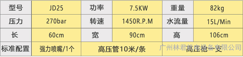 冷水高压清洗车辆JD25小型清洗机君道厂家技术参数: