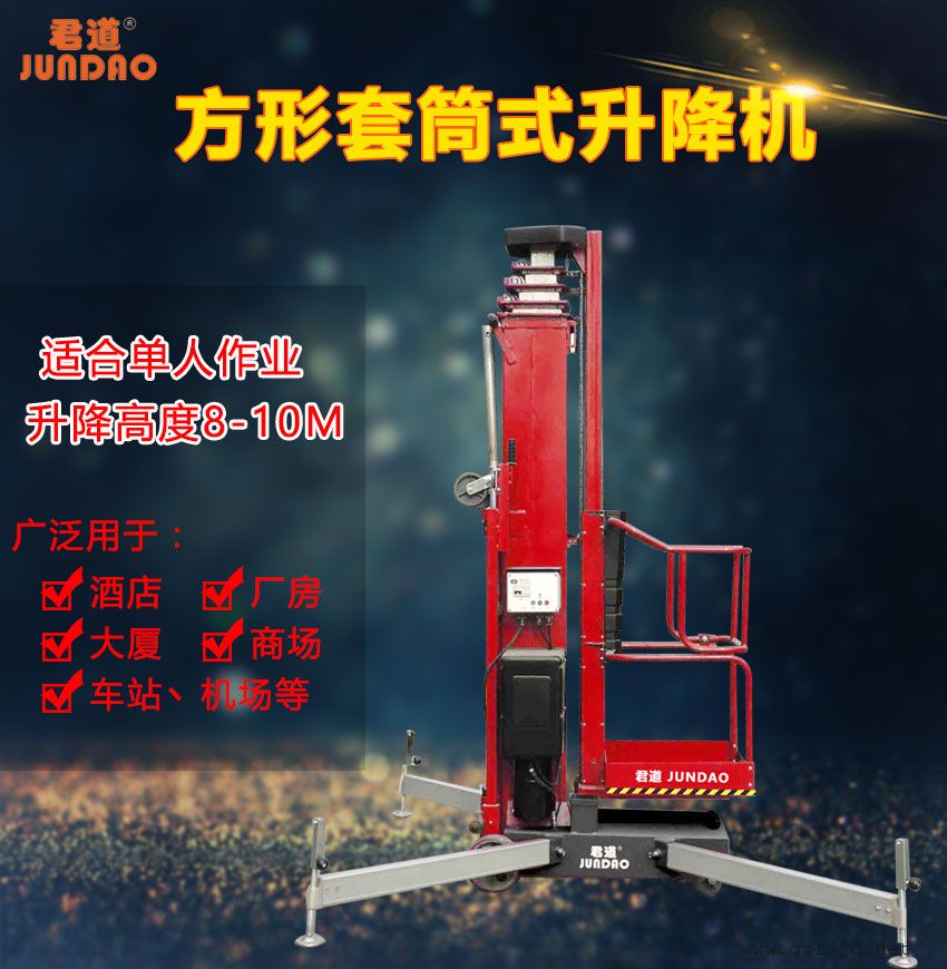 君道方形套筒式高空作业车产品描述及应用: