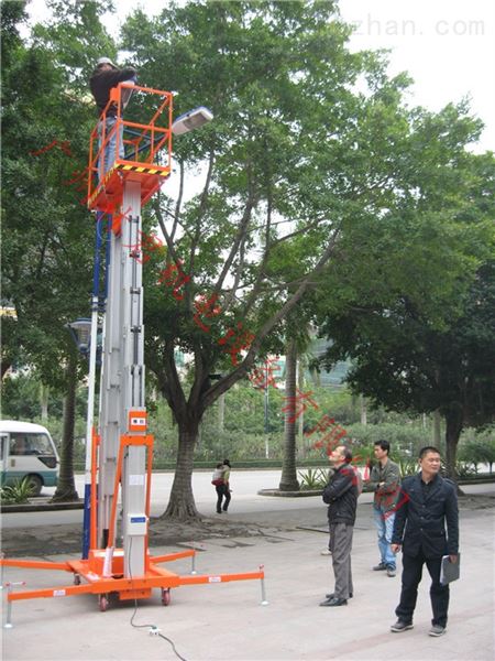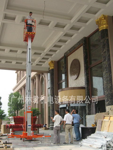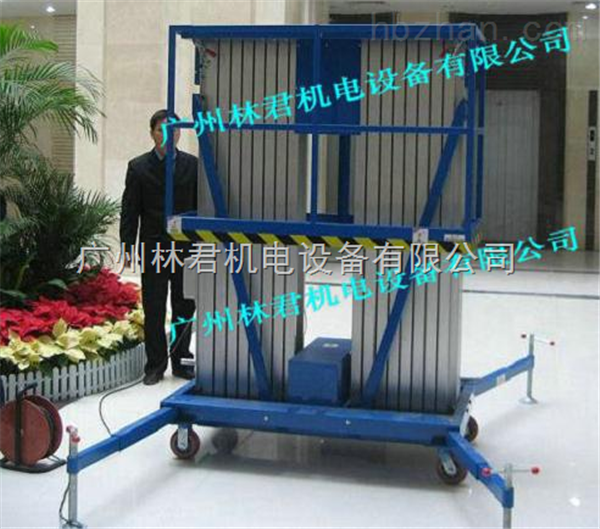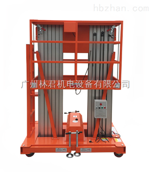 双人工作铝合金升降机,工作高度可达11.7米,配有地面、平台两套操作按钮及围栏自动升降系统,方便使用操作,电动液压升降,升降柱采用双链条式高强度铝合金型材,安全可靠升降平稳,无噪音液压单元经久耐用,设备移动方便灵活,适用与酒店、物业保洁、车站、工厂等进行高空作业工作。